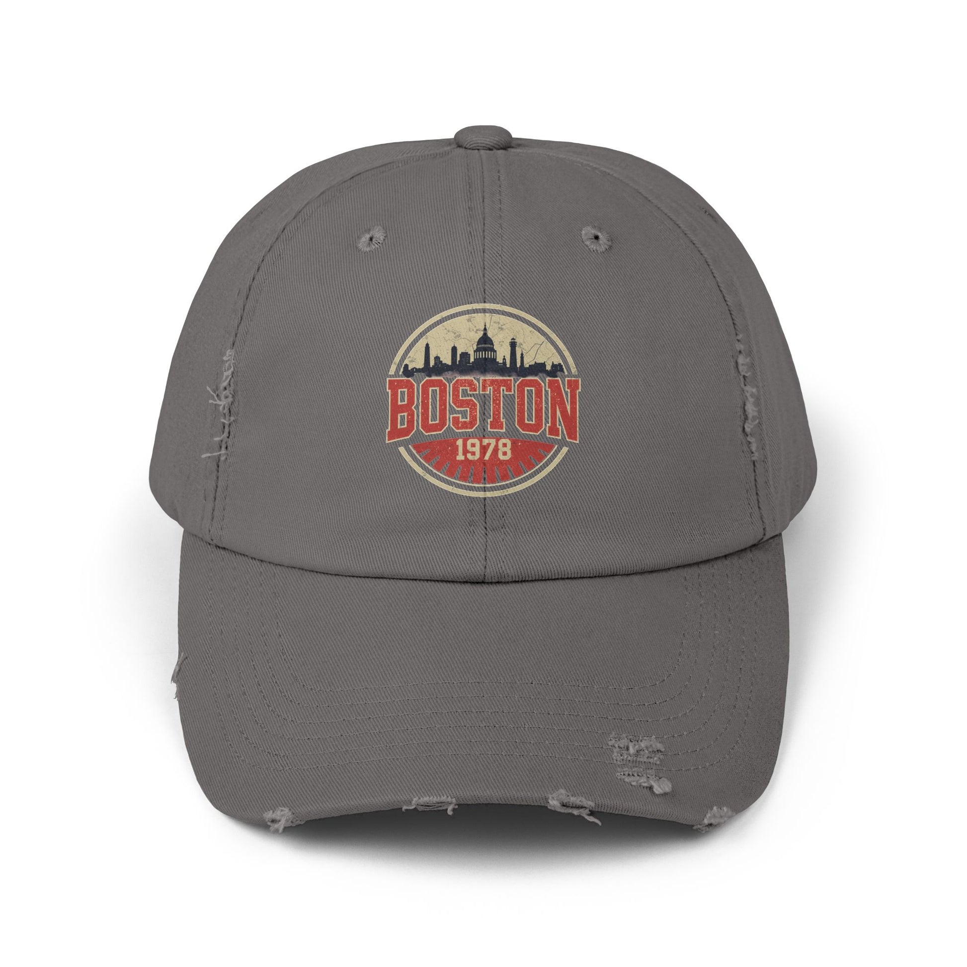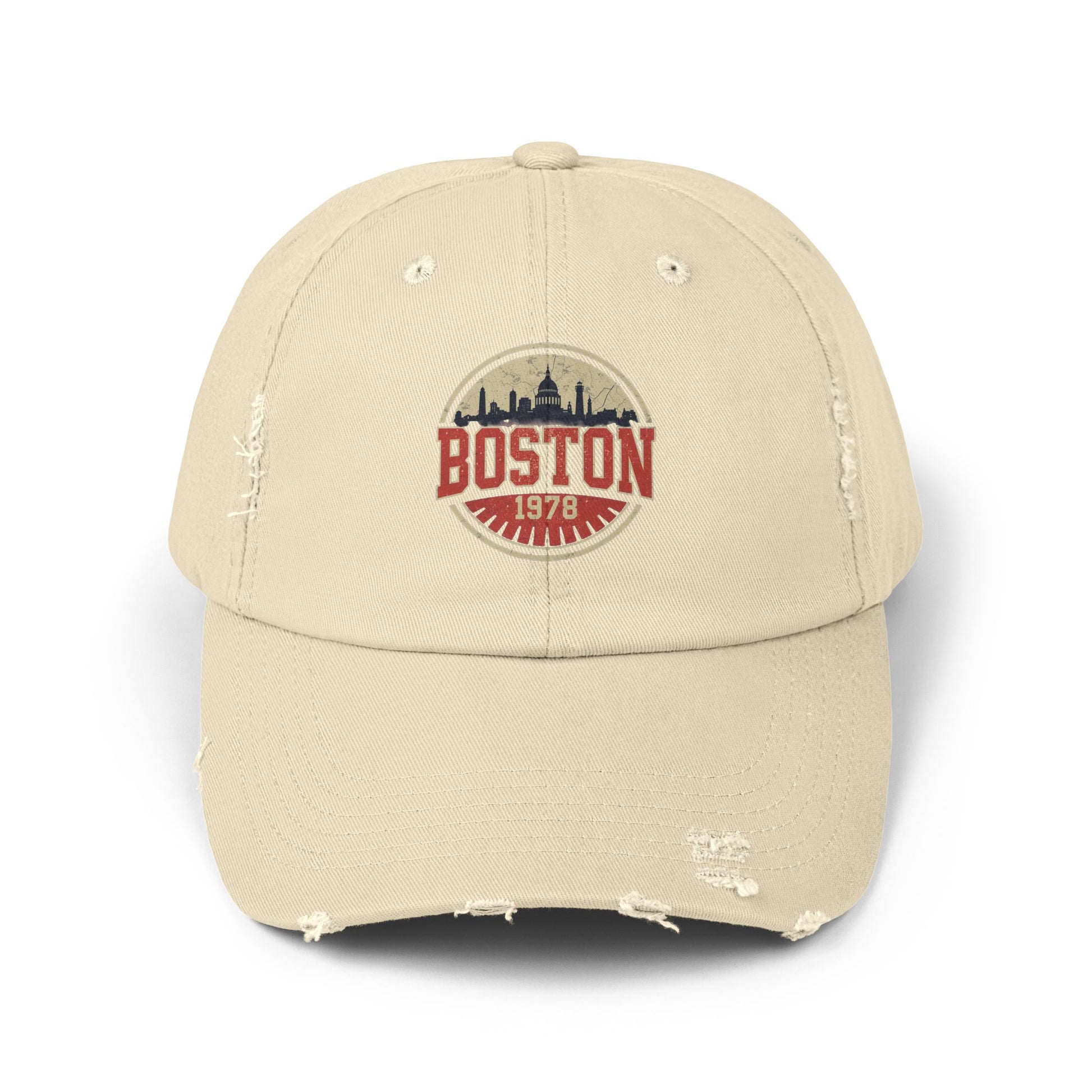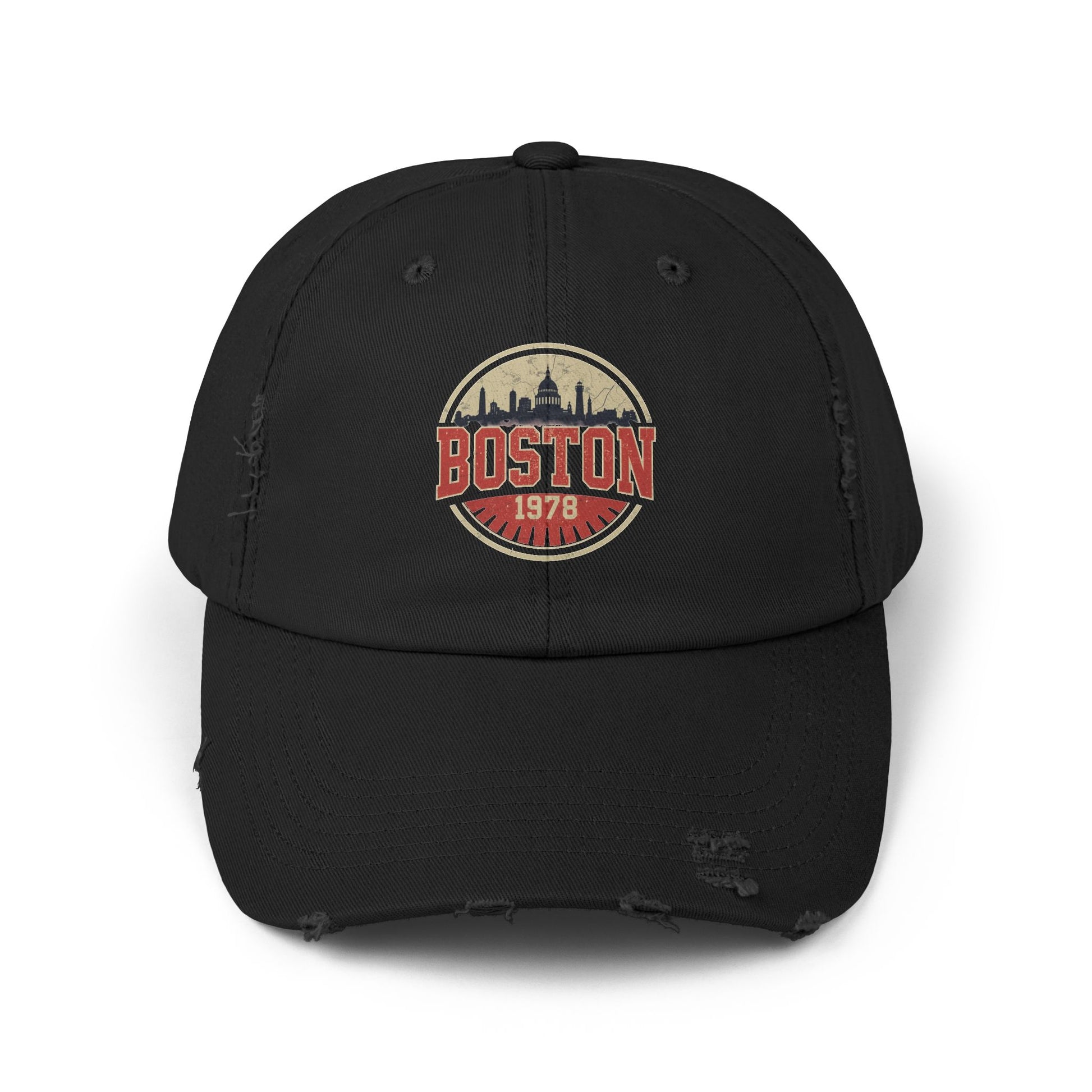 A lived-in, vintage-inspired cap that carries the weathered charm of city streets and long afternoons. The distressed black twill feels broken-in from the first wear, while the faded Boston emblem adds nostalgia without shouting. Lightweight and low-profile, this cap sits casually on your head for errands, neighborhood walks, or game-day lineups. Small irregularities in distressing and color make each hat its own — like a found favorite that keeps showing up in your rotation. Dressed-down, travel-ready, and quietly bold, it slips into everyday outfits and pairs naturally with denim, layered jackets, and worn sneakers.