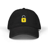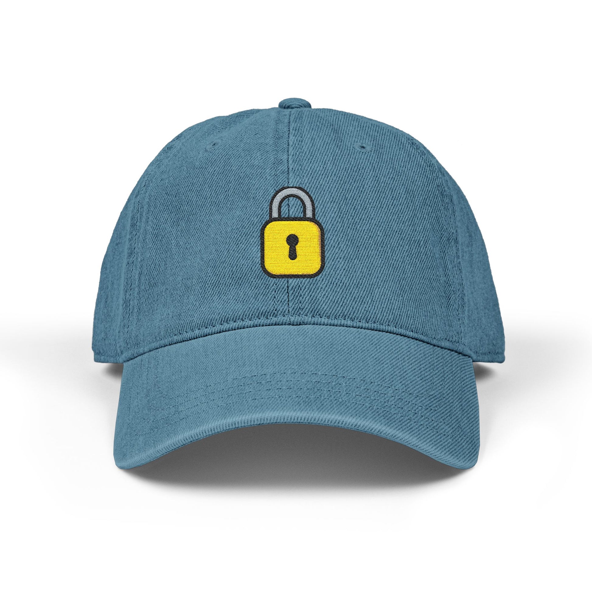 A low-profile denim hat with a tiny, hand-stitched padlock embroidered on the front — quiet, modern, and a little mysterious. The soft cotton crown and pigment-dyed finish give this cap a lived-in look that ages beautifully, while the six-panel unstructured silhouette keeps it casual and comfortable. Lightweight and adjustable, it sits low on the brow and becomes part of your everyday rhythm: the hat you pull on for late-night walks, city errands, or when you want to keep a low center of gravity. The small padlock motif reads like a private symbol — subtle enough for daily wear, bold enough to start a conversation. Feels like an intentional choice, not an announcement.